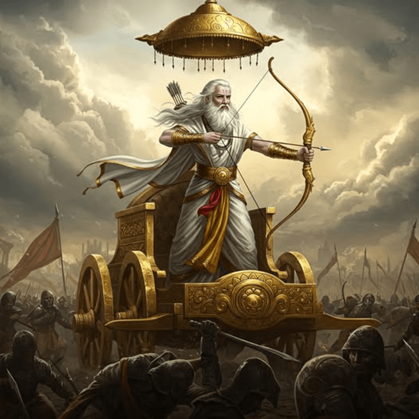 Then, when he came to know that Ashwathama’s father Dronacharya would come to the ever truthful Yudhishthir to confirm the death of his son, he knew that Yudhishthir would die but would not tell a lie when indeed Ashwathama was alive. So, he played another trick and told Yudhishthir that one elephant named Ashwathama had died. So, he forewarned Yudhishthir that he can safely tell the truth to Dronacharya by saying that “अश्वत्थामा हतो नरो वा कुंजरो वा” (Ashwathama died- but I don’t know whether it was a man or an elephant). So, when Dronacharya heard the rumour of his son’s death he came straight to Yudhishthir for confirmation. And as Yudhishthir uttered the first two words अश्वत्थामा हतो, Shri Krishna blew his conch (shankh) loudly. Poor Dronacharya couldn’t hear नरो वा कुंजरो वा and he laid down his arms on hearing the news of his son’s death and was killed on the battlefield.